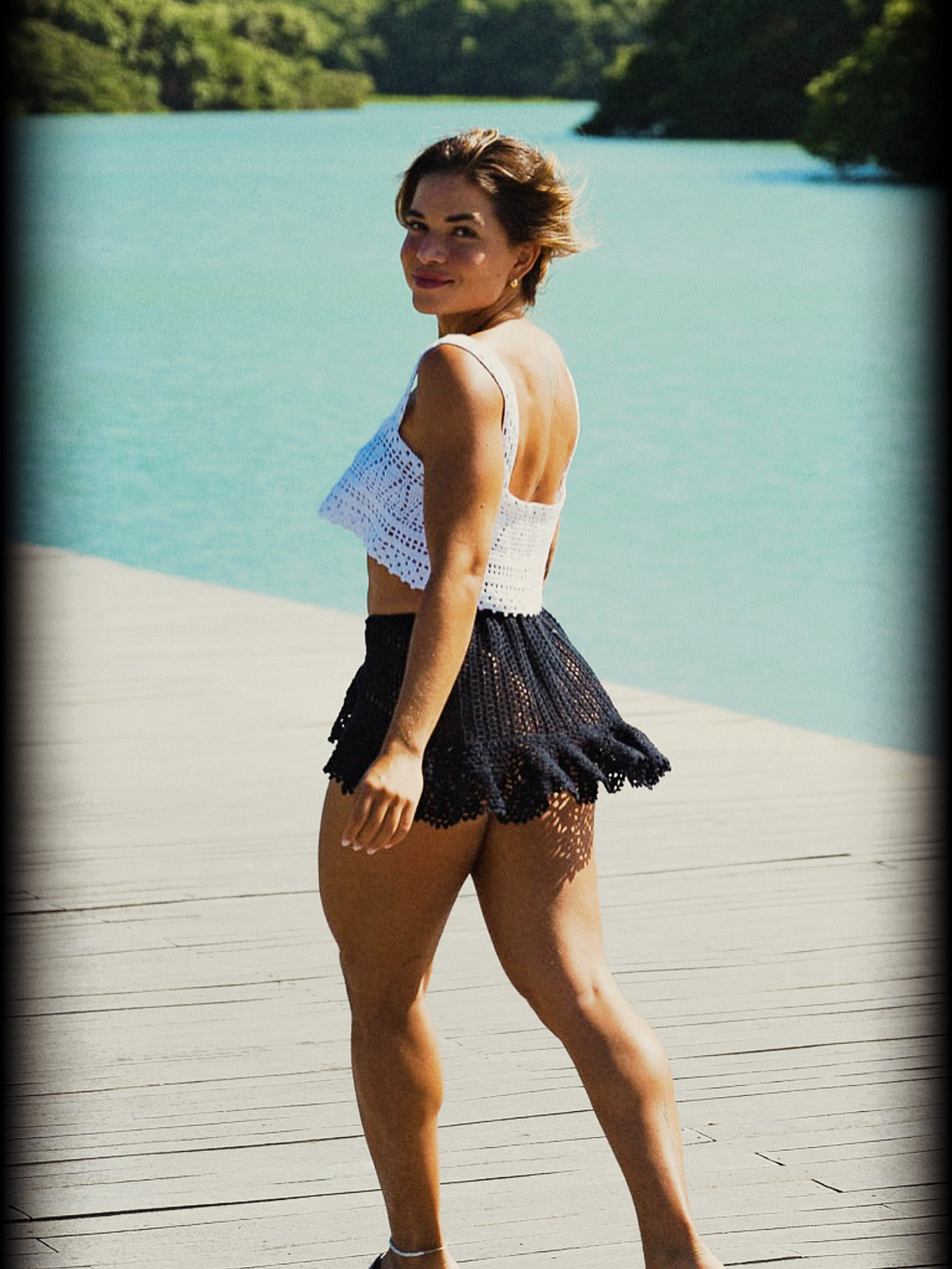 Coco Bay é aquela saia que você veste uma vez e se apaixona. Com babados delicados, modelagem ajustável e amarração lateral, ela se adapta ao corpo com leveza e conforto.